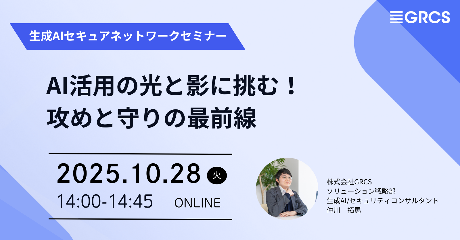 ※本セミナーは、AI博覧会 Summer 2025 で登壇した内容を中心にお送りいたします。急速に進化するAIサービスは、ビジネスにおいて業務効率の向上や新たなビジネスチャンスの創出に寄与しています。しかし、その一方で、AIの活用に伴うリスクへの懸念から意思決定が進まないことが課題となっています。また、進化の速さゆえに、新たな技術やモデルに振り回されることが多く、さらに攻撃者側も利用してくるため、AIの活用といった業務効率化や品質向上といった攻めの考えだけでなく、守る側もAIを活用したセキュリティ対策を行っていく必要があります。本セミナーでは、生成AIをはじめとしたAI全般における脅威点を交えて、経営と現場で備える最新の防御戦略と実践ヒントを解説します。