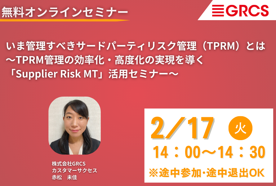 【2/17開催】いま管理すべきサードパーティリスク管理(TPRM)とは~TPRM管理の効率化・高度化の実現を導く「Supplier Risk MT」活用セミナー~